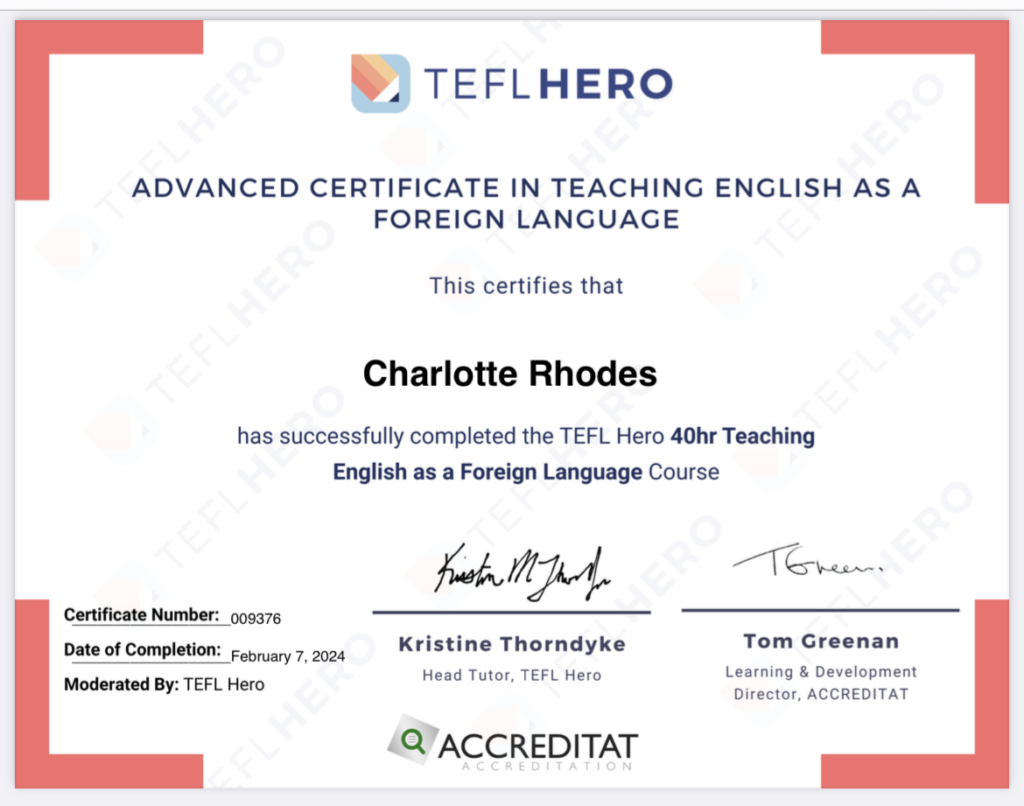 - TEFL Accredited: I hold TEFL qualifications, ensuring top-notch instruction.